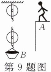 9. 如图所示,某人站在 A 处用一根绳子和两个滑轮提起物体 B,画出最省力的绳子绕法。