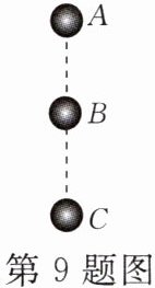9. 一个物体由 $ A $ 点自由下落时,相继经过 $ B $、$ C $ 两点,如图所示,已知 $ AB = BC $,物体在 $ AB $ 段重力做功 $ W_{1} $,功率 $ P_{1} $;在 $ BC $ 段重力做功 $ W_{2} $,功率 $ P_{2} $,则下列关系正确的是(