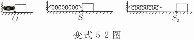 变式5-2 如图所示,弹簧左端固定,用木块压缩弹簧到O点,静止释放后木块在水平地面上向右滑行,经弹簧原长S₁点,继续滑行至S₂点停下。木块从O点开始运动所经过的路程为S;则在整个运动过程中木块和弹簧所具有的机械能总量(E)与木块经过的路程(S)的关系正确的是(