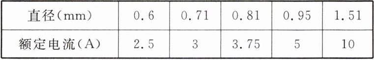 。(4)家庭使用交流电时要谨防电流过大。若家中电路最大的正常工作电流为 4.8 A,那么根据表中应选择用直径为