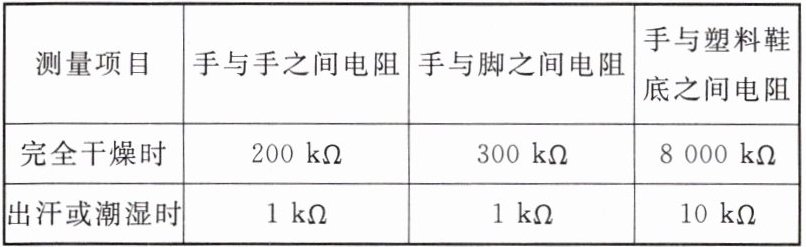 (1)一个全身潮湿的人,赤脚站在地上,由于不小心,手接触火线,发生触电事故,试计算分析此时保险丝是否熔断?