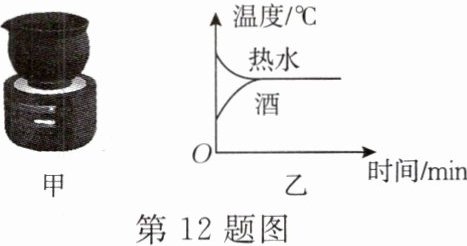 12. 如图甲所示用地炉加热酒,酒装在小壶中浸泡在陶锅的热水里。锅内的热水和酒的温度随时间变化关系如图乙所示,下列说法中正确的是(