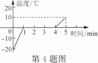 4. 如图所示是某实验小组画出的 $ 1 $ $ kg $ 冰熔化时温度随时间变化的图像。实验中实验小组成员严格控制变量,使冰(水)单位时间内吸收相等的热量。已知水的比热容是 $ 4.2 × 10^3 $ $ J/(kg \cdot ^{\circ}C) $。根据所学知识并分析图像,下列说法中,正确的是(