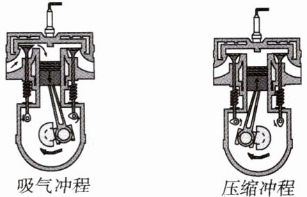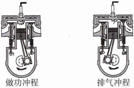 冲程、排气冲程四个冲程组成,只有压缩冲程和做功冲程伴随有能量的转化。压缩冲程是活塞运动的机械