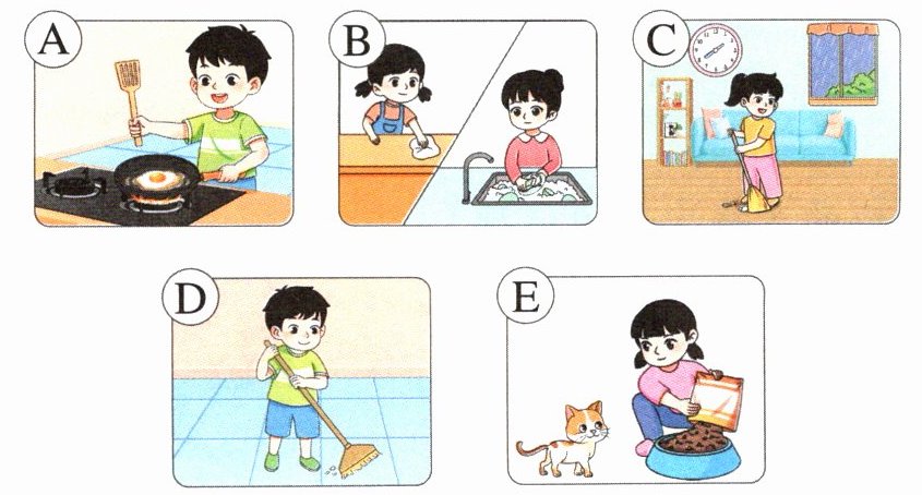 【家务劳动类】给下列句子选择相应的图片。