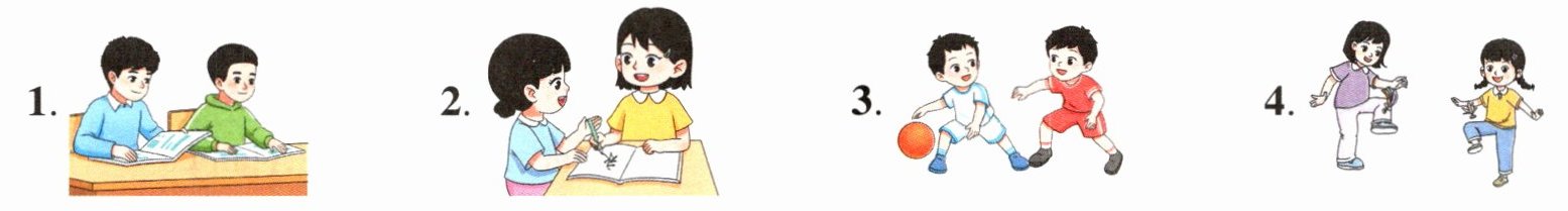 1. Hi, I'm Ben. This is my best friend. His name is Leo. He's tall and strong. He has short hair. He's funny. We often ______