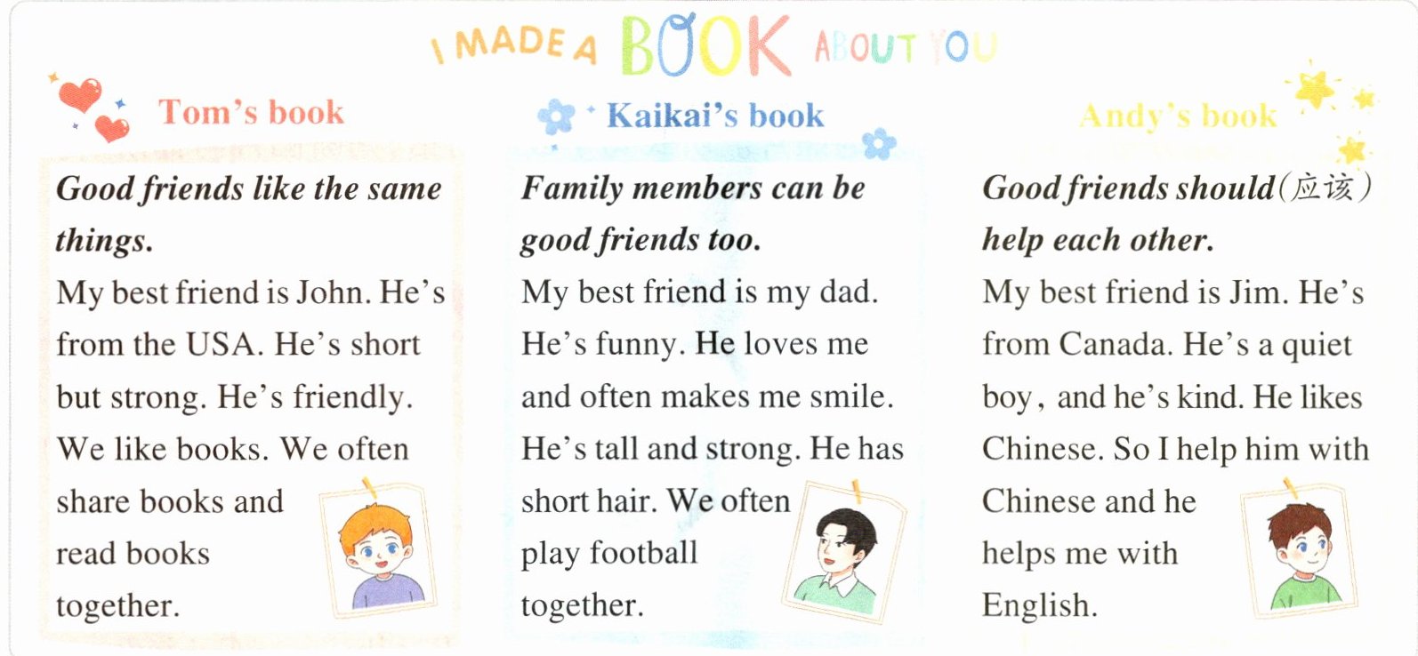 三 好朋友应该是什么样的呢?阅读同学们制作的朋友书,完成下列任务。