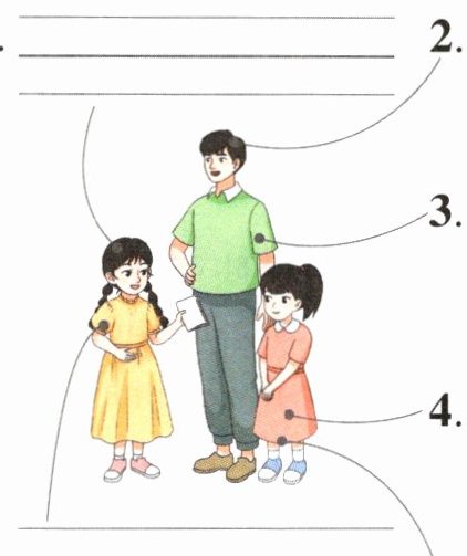 【人物特征类】根据图片选出相应的词汇写在四线三格上。
