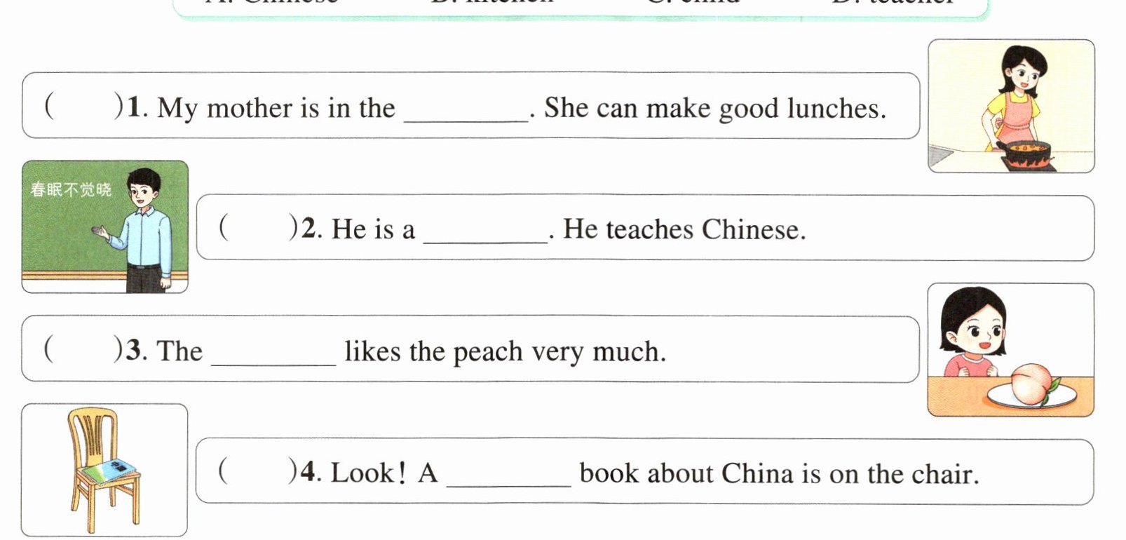 四 从歌谣中找出与画线部分发音相同的单词,写在四线三格上。