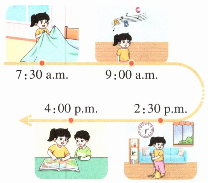 1. making the bed 2. singing songs 3. cleaning the room 4. telling a story