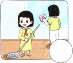 I'm sweeping the floor. These are Lulu and Nana. They are cleaning the room. Miss Green is cooking. And Annie is watering the flowers. Labour Group
