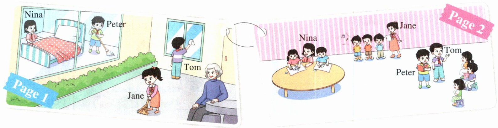 ( )4. On Page 2, are Peter and Tom cleaning the room?