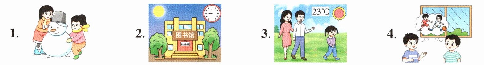 三 假期结束,孩子们兴致勃勃地分享自己的旅行照片。阅读对话,完成下列任务。