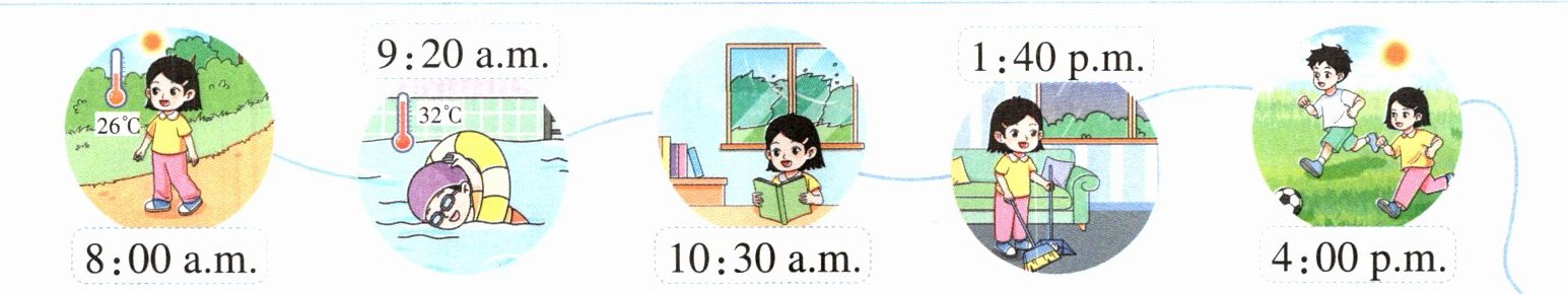 二 无论天气如何,娜娜总是保持乐观。观察娜娜的一天,匹配相应的描述。