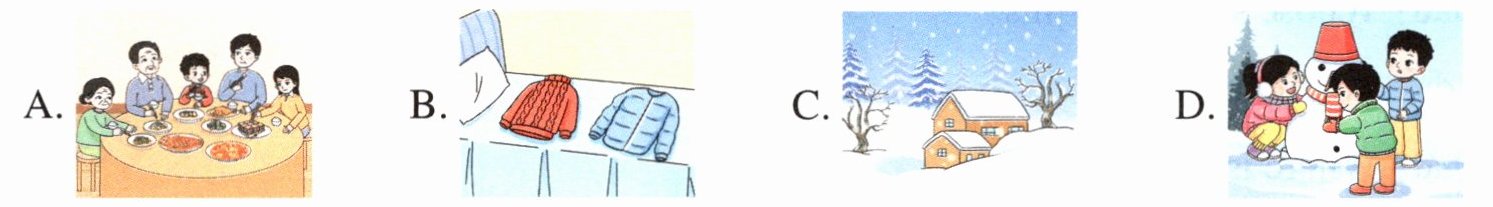 ( )1. It's a quiet and beautiful season. We can see white snow everywhere.