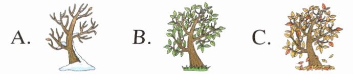 The weather gets cool. Leaves change colours and fall. Farmers harvest(收获) rice and fruit.