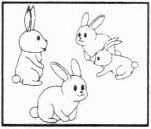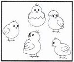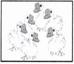 1.five baby chickens 2.two tomato plants 3.four(white)rabbits 4.six geese 5.many/ten flowers