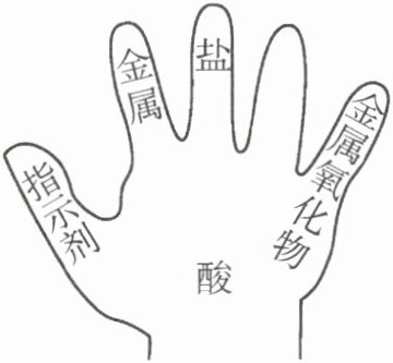 6. 如图所示是小科在复习科学时,构建酸通性的“手掌图”,其中五根手指分别表示能与酸发生化学反应的五类物质。