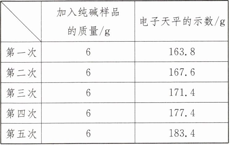 |加入纯碱样品的质量/g|电子天平的示数/g|