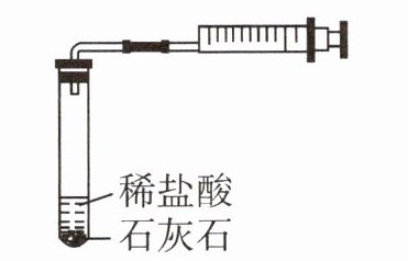 (实验装置图:试管内有稀盐酸和石灰石,连接注射器)
