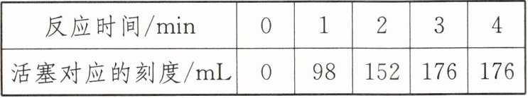 |活塞对应的刻度/mL|0|98|152|176|176|