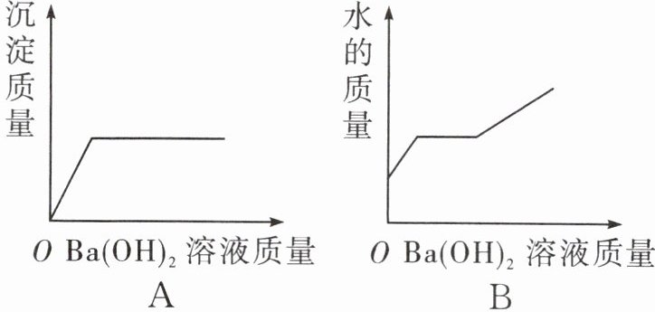 7. 向装有50 g稀硫酸的小烧杯中,不断慢慢滴加10%的$Ba(OH)_2$溶液至过量,有关量的变化情况如图所示(横坐标表示氢氧化钡溶液的质量,纵坐标表示小烧杯中量的变化)。其中肯定不正确的是 ( )
