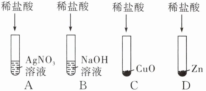 1. 为研究盐酸的化学性质,小明进行如下实验。其中能产生白色沉淀的是 ( )