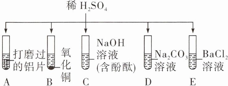 10. 为验证稀$H_2SO_4$的化学性质,同学们做了如图实验: