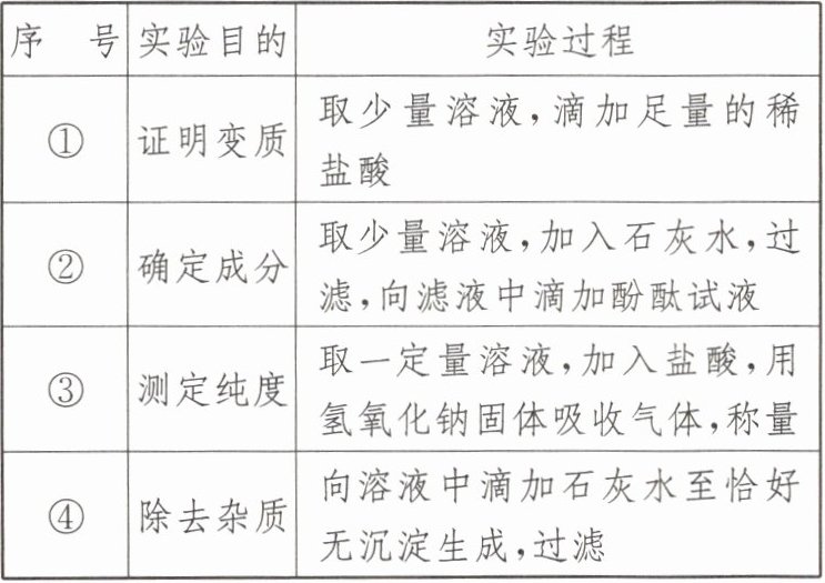 |①|证明变质|取少量溶液,滴加足量的稀盐酸|