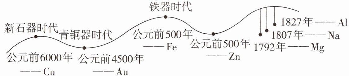 3. 金属材料的使用作为一个时代的标志,见证了人类文明发展的过程。历史上人类冶炼不同金属的大致年代如下。