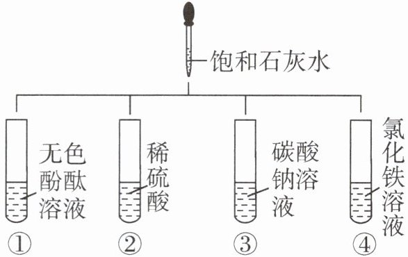 3. (2024·上城月考)如图所示,分别向四支试管中加入足量的饱和石灰水,使其与试管内溶液充分反应。其中不能体现碱的通性的是 ( )