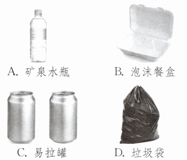 6. (2024·温州期中)金属等材料的应用,促进了人类文明的发展和社会的进步,同时材料使用中的环保与回收问题,也与人类生活息息相关。下列是学习小组同学周末在景区捡拾的垃圾,其中属于金属材料的是 ( )
