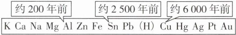 1. 如图表示了金属活动性顺序表中铜、锡和铝被人类大规模冶炼、利用的大致年限。