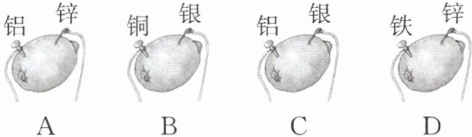 4. 在柠檬中插入两种不同的金属可以制得水果电池。相同条件下,水果电池的电压与两种金属的活动性差异大小有关。下列柠檬电池的两种金属中,活动性差异最大的是 ( )