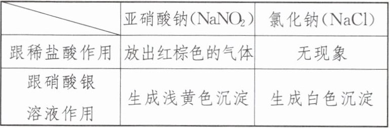 | | 亚硝酸钠($NaNO_2$) | 氯化钠($NaCl$) |