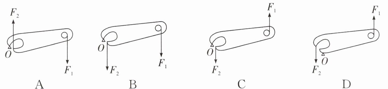 4. 如图所示,开瓶盖的起子是杠杆。开瓶盖时杠杆的支点、动力和阻力,表示正确的是( )