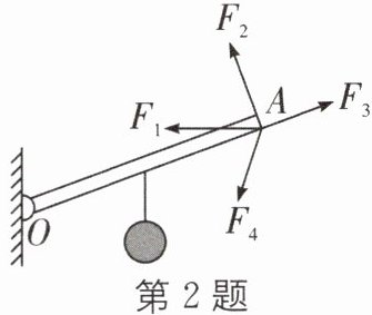 2. 如图所示,杠杆处于平衡状态,作用在A点的4个力中力臂最大的是( )