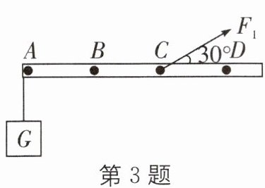 3. 如图所示,一轻质硬棒在A点悬挂重物G,在C点作用一拉力F,使硬棒水平平衡,则硬棒的支点可能在( )