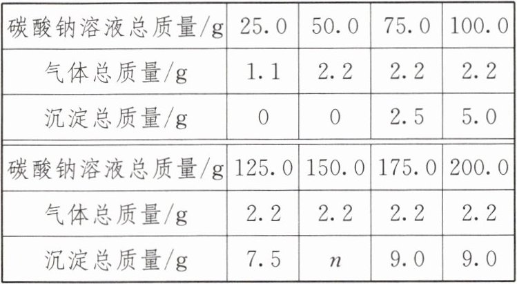 |碳酸钠溶液总质量/g|125.0|150.0|175.0|200.0|