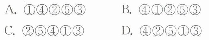 5. 为了除去粗盐中所含的$Ca^2⁺、$$Mg^2⁺、$$SO_4^2⁻$及泥沙,先将粗盐溶于水,过滤除去泥沙,然后进行下列各操作:① 过滤;② 加过量的NaOH溶液;③ 加适量的盐酸;④ 加过量的$Na_2CO_3$溶液;⑤ 加过量的$BaCl_2$溶液。下列操作顺序中,正确的是( )