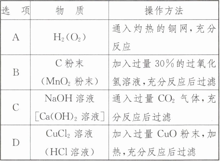 |A|$H_2(O_2)$|通入灼热的铜网,充分反应|