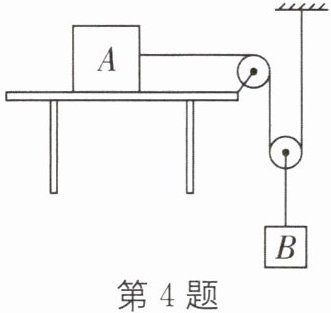 4. 如图所示,物体A、B的重分别为40 N、20 N,动滑轮重为10 N,此时物体A在水平面上向右以2 m/s做匀速直线运动,则下列说法正确的是(绳子和滑轮间的摩擦不计)( )