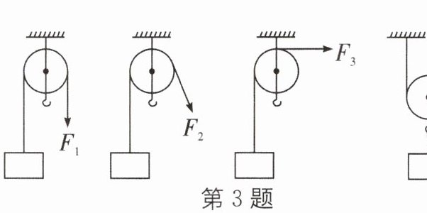 3. 如图所示,用滑轮匀速提升同一重物,所用拉力分别为$F_1、$$F_2、$$F_3、$$F_4。$若不计滑轮自重及摩擦,则下列关系式正确的是( )