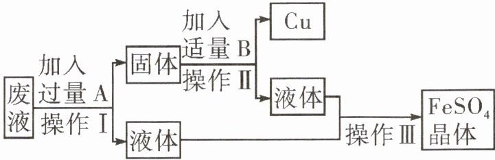 9. 某工厂欲从含有$CuSO_4$的废液中回收金属铜,并得到工业原料硫酸亚铁,其工业流程如图所示。