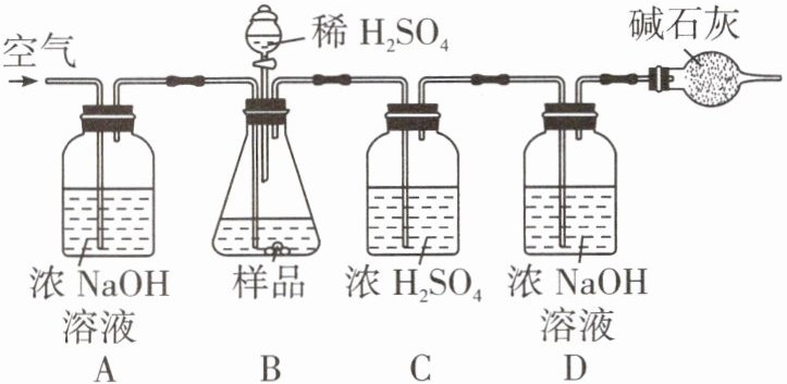 (3)实验结束后测得装置 D 增重 0.44 g,则湖盐样品中 $Na_2CO_3$ 的质量分数为多少?