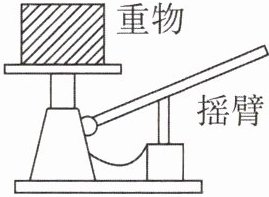 5. 如图所示是一种小型千斤顶的示意图,当手往下压动摇臂时,能把重物抬高一段较小的距离,工人在4 s时间内用100 N的力竖直向下压动摇臂1 m,把1000 N的重物匀速抬高8 cm。则重物上升的速度为______m/s,人做的功为______J,千斤顶的效率是______%。