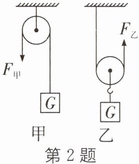 2. 两个完全相同的滑轮,其重力均为10 N。分别用如图所示的两种方式,将重均为40 N的甲、乙两物体匀速提升相同的高度,所用的拉力为$F_{甲}$、$F_{乙}$,它们的机械效率为$\eta_{甲}$、$\eta_{乙}$,下列判断正确的是(不计绳重与摩擦) ( )