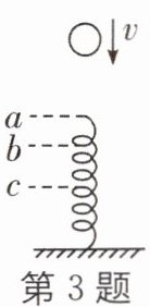 3. 如图所示,小球从竖直放置的弹簧上方一定高度处由静止开始下落,从 a 处开始接触弹簧,压缩至 c 处时弹簧最短,从 a 至 c 处的过程中,小球在 b 处速度最大。不计空气阻力,则从 a 至 c 处的过程中,下列说法正确的是( )