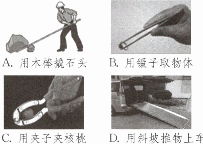 C. 用夹子夹核桃 D. 用斜坡推物上车