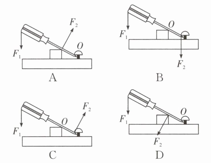 2. 小科通过竖直向下压螺丝刀将木板上的钉子撬起,下列能正确反映螺丝刀杠杆示意图的是( )